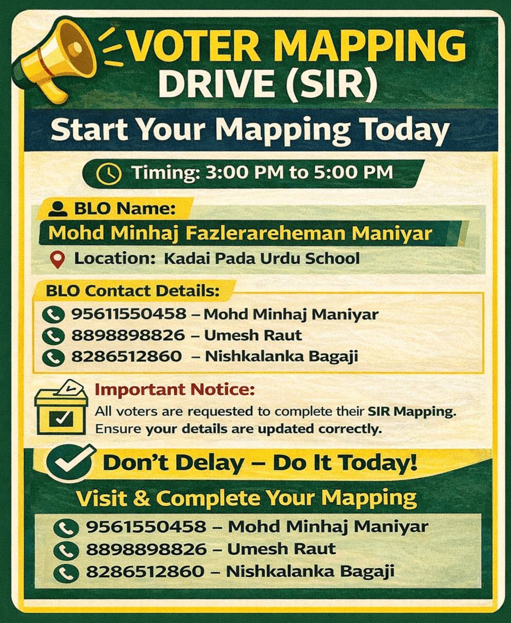 Uttan voter mapping process has started. Please contact your BLO to check your area mapping and complete your process.