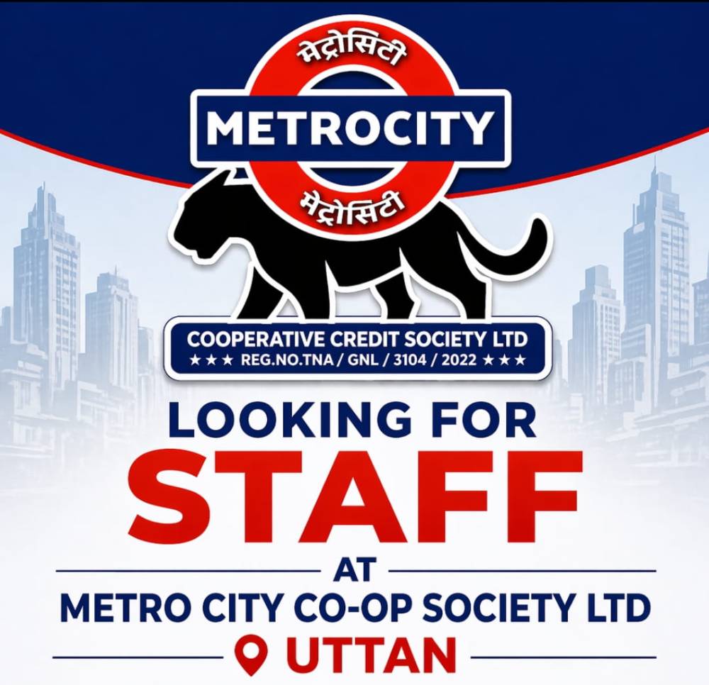 Looking for staff at Metro City Co-Op Society Ltd, Uttan - Know someone? Visit the office or Contact Here - 9892418083